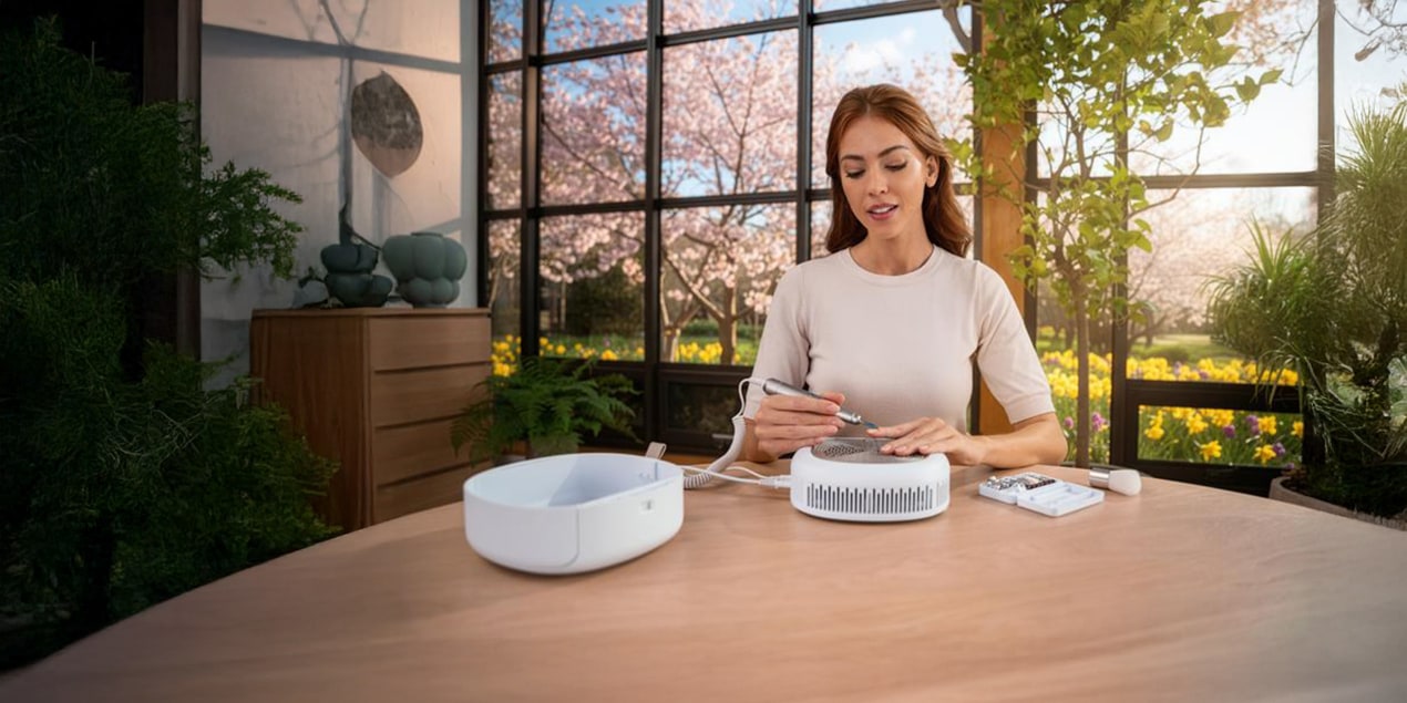 Junge Frau nutzt den Insektenstichheiler BR 60 an ihrem Arm im Freien