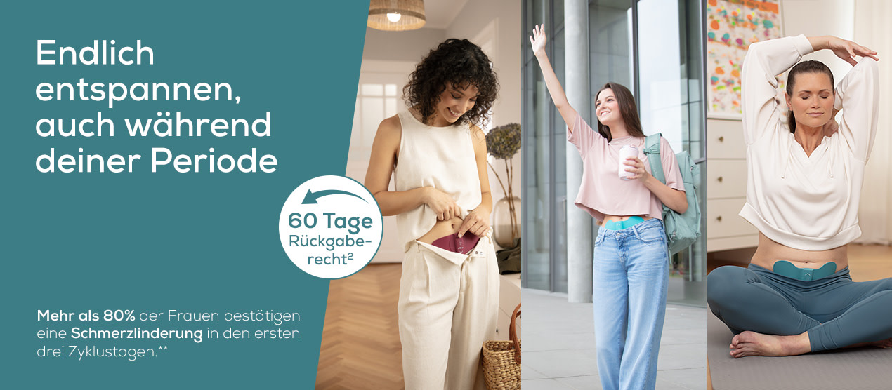 Regelschmerzen zu 100% natürlich und medikamentenfrei lindern - durch TENS und zuschaltbarer Wärmefunktion