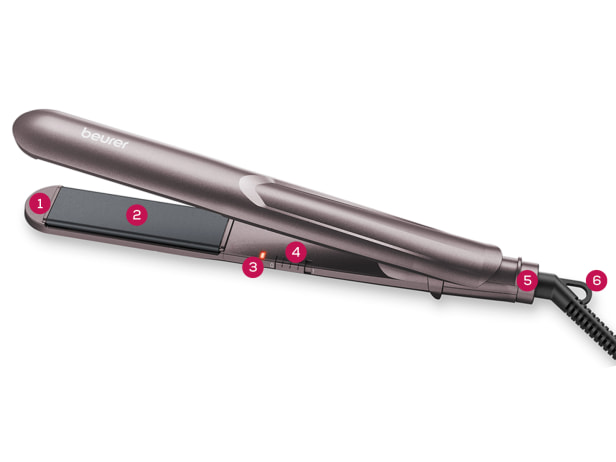 1. Heizplatten: Die federnd gelagerten Heizplatten und die abgerundeten Kanten passen sich optimal an die Haarsträhne an.