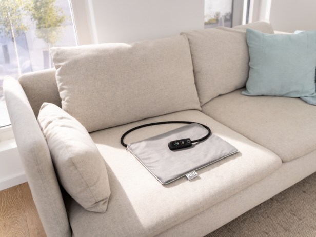 Der Bezug ist abnehmbar und kann bei 30°C in der Maschine gewaschen werden. Das Heizelement lässt sich einfach abwischen.