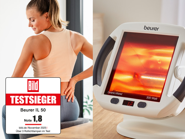 Der Infrarot-Wärmestrahler IL 50 von Beurer ist ideal bei Erkältungen und Muskelverspannungen. Er verfügt über einen stufenlos verstellbaren Schirm, einen Timer mit Abschaltautomatik und eine individuell einstellbare Behandlungszeit.