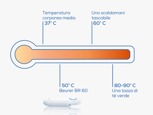 Ogni persona ha una percezione individuale della temperatura e della soglia di sopportazione del dolore. Pertanto, l'applicazione risulta calda in modo diverso per ogni persona. Tuttavia a 50° C, il Dopopuntura è sicuro per la pelle, anche se sembra caldo. La temperatura è necessaria per alleviare sintomi quali prurito e gonfiore.