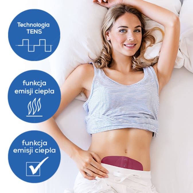 Poczuj ulgę od dolegliwości związanych z miesiączką lub endometriozą - bez leków. Połączenie kojącego ciepła i elektrostymulacji TENS złagodzi ból i pozwoli Ci cieszyć się dniem.