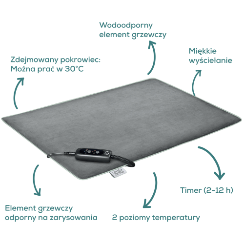 - 2 poziomy temperatury i 4 ustawienia timera (2h, 4h, 8h, 12h)