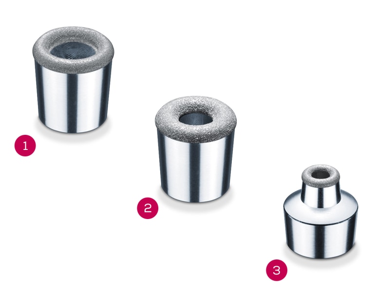 - 3 wysokiej jakości końcówki z powłoką szafirową do delikatnego i skutecznego peelingu: końcówka drobna, końcówka szorstka, końcówka precyzyjna