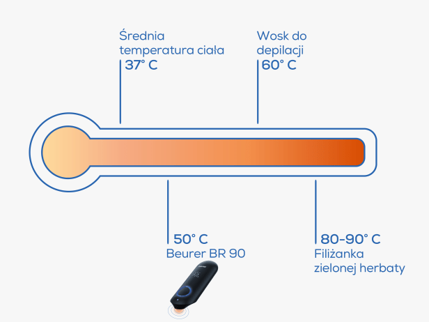 Każdy człowiek ma indywidualną wrażliwość na temperaturę. W związku z tym każda osoba inaczej odczuwa ciepło podczas stosowania. Urządzenie uśmierzające ból po ukłuciu insektów o temperaturze 50°C jest bezpieczne dla skóry, nawet jeśli jest gorące. Temperatura jest niezbędna do złagodzenia takich objawów, jak swędzenie i obrzęk.