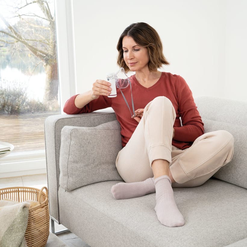 Whether at home or on the go, the Beurer IH 51 Nebuliser enables fast and effective inhalation. It is particularly suitable for treating colds, asthma and other respiratory diseases. The compact and quiet device is suitable for both adults and children.